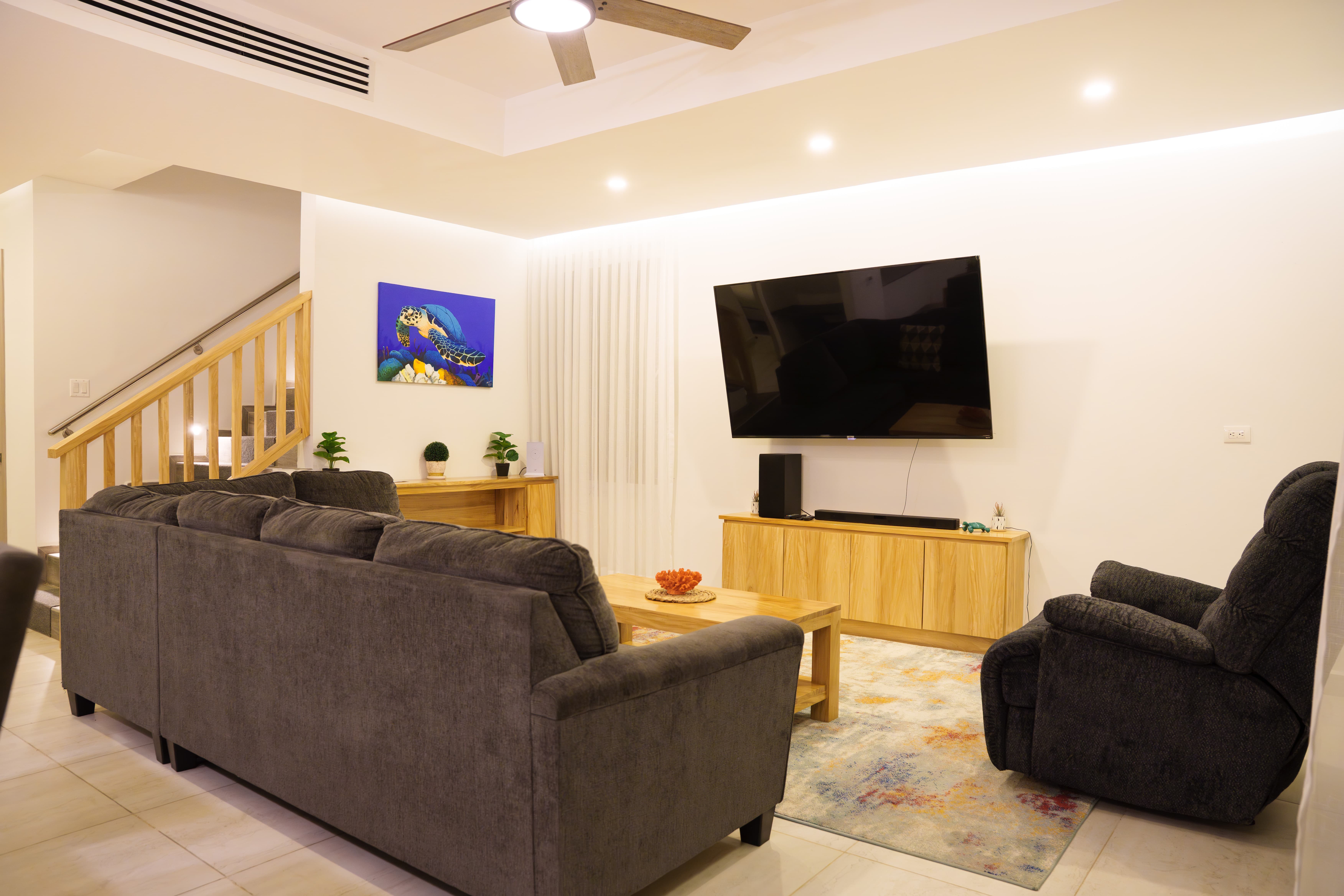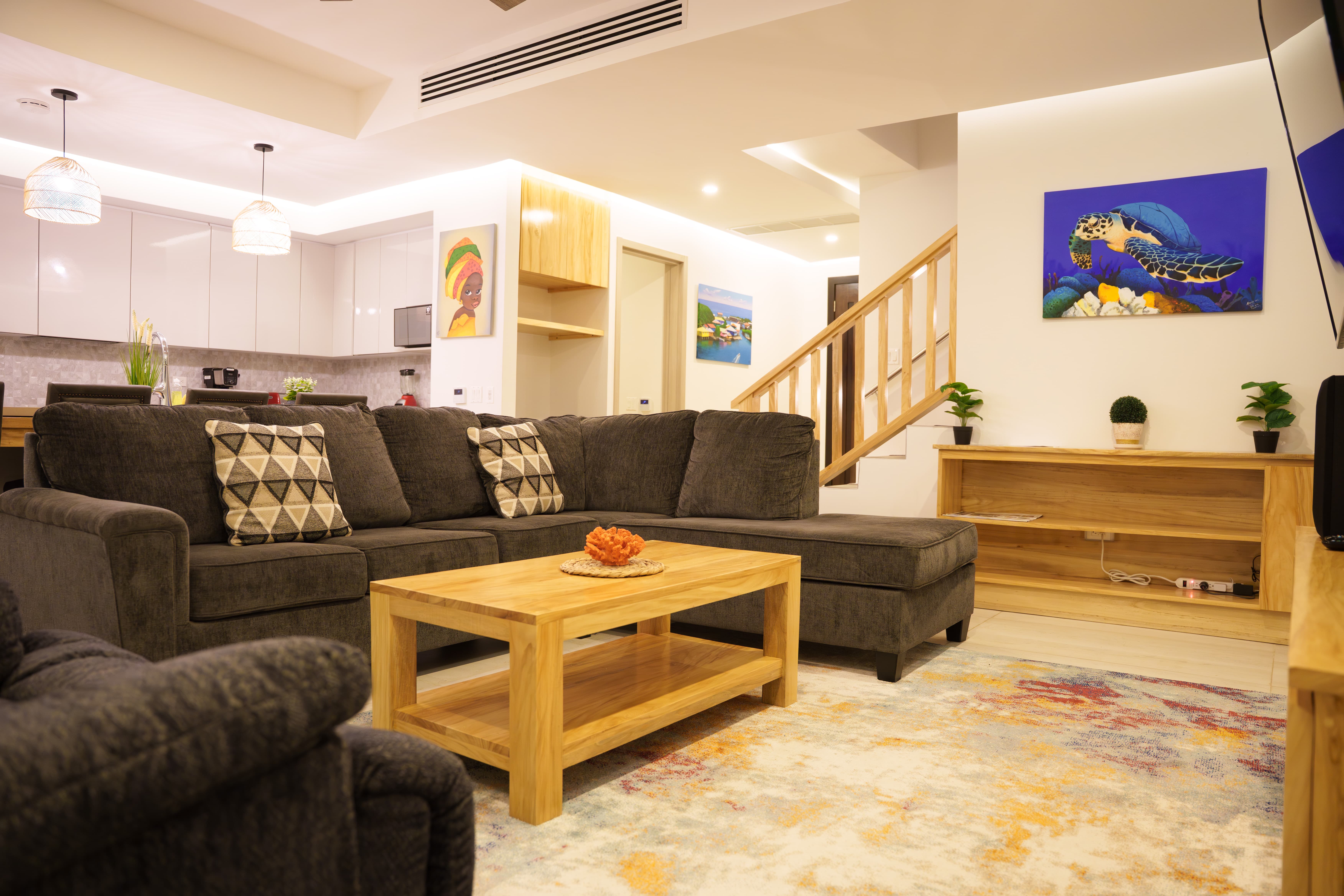 Sea Turtle Villa is the ultimate vacation getaway—our 3-bedroom, 4-bathroom villa at Ocean One, located in the heart of West Bay, Roatan, Honduras. This fully furnished and equipped villa boasts a private jacuzzi, perfect for relaxing after a day of adventure. The villa features: - Primary Bedroom: 1 king-size bed - Secondary Bedroom: 2 queen-size beds - Studio Room: 1 double bed - A large sofa bed for additional sleeping arrangements. While the villa is designed to comfortably accommodate up to 5 guests, this limit can be discussed at a moderated price if additional accommodations are needed. The property also boasts a beautiful private pool, where you can cool off and soak up the sun. Best of all, the villa is within walking distance of West Bay Beach, one of the best beaches in the world, offering crystal-clear waters and white sandy beaches. Whether you're looking for a romantic getaway or a family vacation, this luxurious villa is the perfect choice.